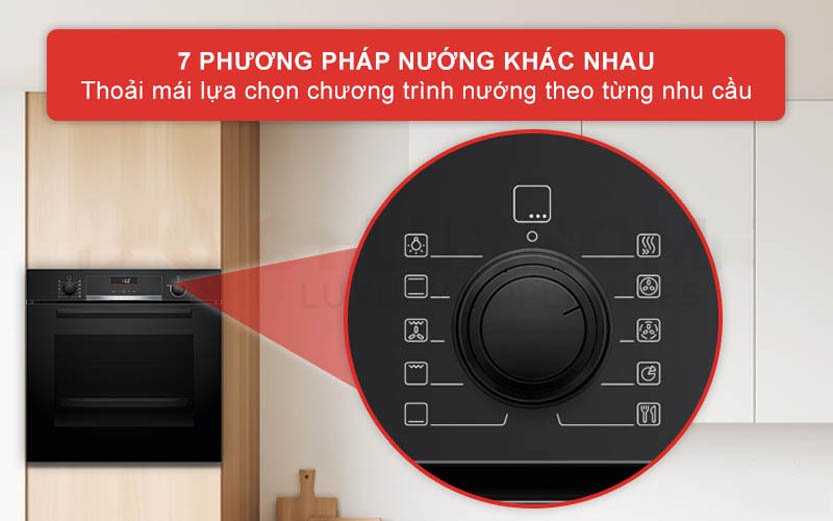Đối với lò nướng Bosch serie 6 HBA5360B0K người dùng được tùy chọn 7 phương pháp nướng khác nhau. Phù hợp nấu nhiều món ăn cho cả gia đình cùng thưởng thức.