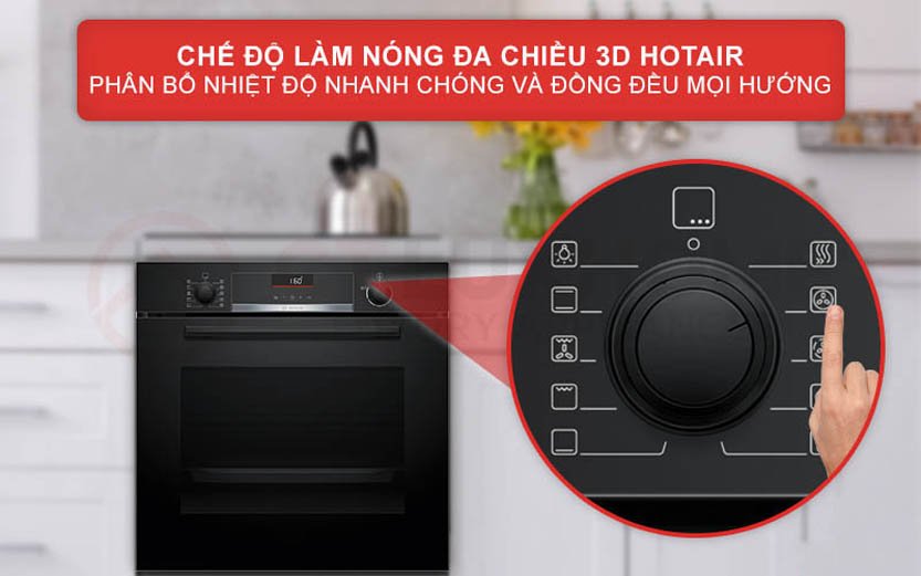 Chế độ nướng 3D Hotair phân phối nhiệt đồng đều ở mọi mặt và mọi cấp độ