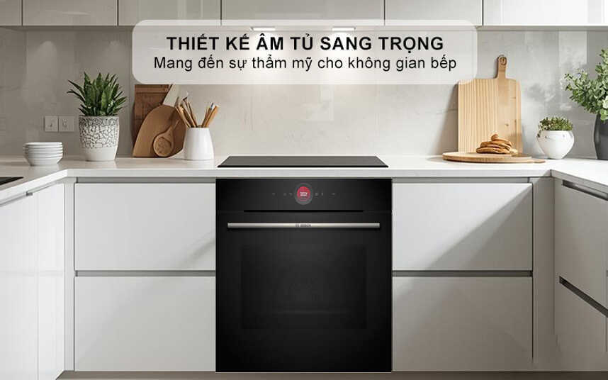 - Lò nướng âm tủ Bosch HBG7741B1 nổi bật với thiết kế hiện đại và sang trọng. Vỏ thiết bị được làm bằng thép không gỉ với màu đen huyền bí cùng mặt kính cường lực cao cấp, sản phẩm không chỉ mang lại vẻ đẹp tinh tế mà còn dễ dàng trong việc vệ sinh và bảo trì.