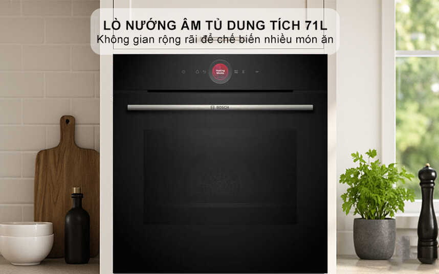 Lò nướng Bosch HBG7741B1 có dung tích khoang lên tới 71 lít, rất phù hợp cho gia đình từ 3 đến 5 thành viên. Với dung tích rộng rãi này, bạn có thể thoải mái chế biến đa dạng các món ăn thơm ngon.