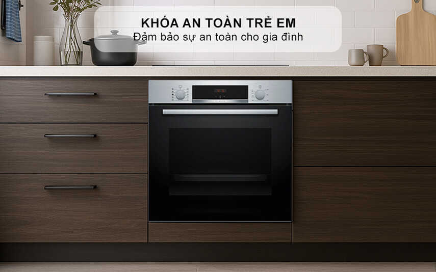 - Bosch trang bị chế độ khóa trẻ em an toàn, giúp ngăn ngừa mọi thao tác vô tình từ trẻ nhỏ trong quá trình sử dụng. Bên cạnh đó, lò còn có tính năng tự động ngắt khi đạt đến nhiệt độ cài đặt, giúp tránh tình trạng quá nhiệt, bảo vệ thiết bị và người dùng.