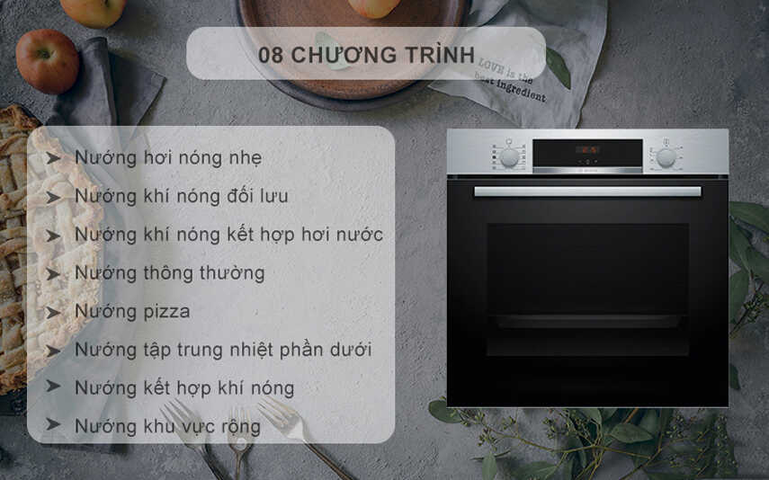 Với tính năng này, bạn có thể nướng cùng lúc nhiều tầng thực phẩm như bánh, pizza, gà quay… mà vẫn đảm bảo chín đều, giữ hương vị nguyên bản và không bị lẫn mùi. Đây chính là ưu điểm vượt trội giúp lò nướng Bosch tiết kiệm thời gian, tối ưu năng lượng và mang lại trải nghiệm nấu nướng hiện đại, tiện lợi cho mọi gia đình.