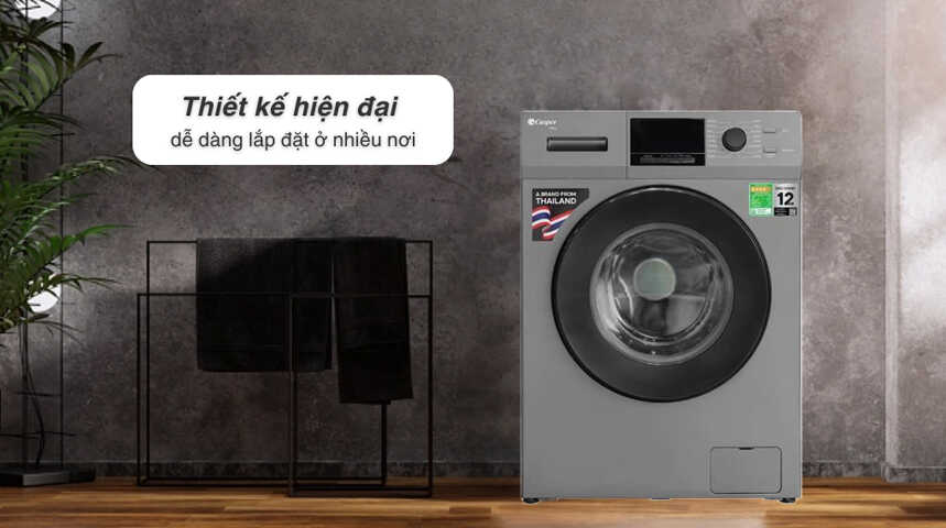 - Máy giặt Casper Inverter 9.5 kg WF-95VG5 thuộc dòng máy giặt cửa trước – lồng ngang, nổi bật với thiết kế tông màu đen – xám tối giản và hiện đại. Kiểu dáng vuông vức, đường nét tinh gọn giúp sản phẩm dễ dàng hòa hợp với nhiều phong cách nội thất, đồng thời tạo điểm nhấn sang trọng cho không gian phòng giặt hoặc khu vực sinh hoạt của gia đình.