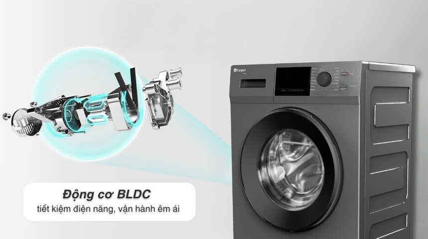 Máy giặt dùng loại động cơ Curoa (BLDC Inverter) tiết kiệm điện năng, vận hành bền bỉ.