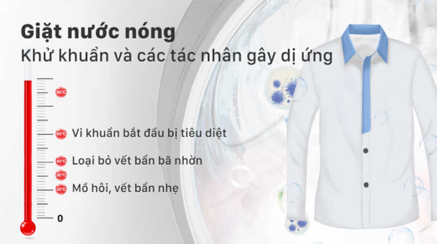 Giặt sạch sâu và diệt khuẩn 99.9% với công nghệ giặt nước nóng