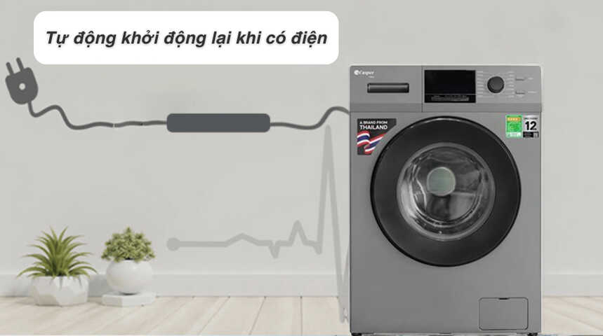 - Tự khởi động lại khi có điện phòng các trường hợp mất điện xảy ra đột ngột khi máy đang hoạt động, máy giặt có thể tự khởi động lại mang đến sự tiện lợi cho người dùng.