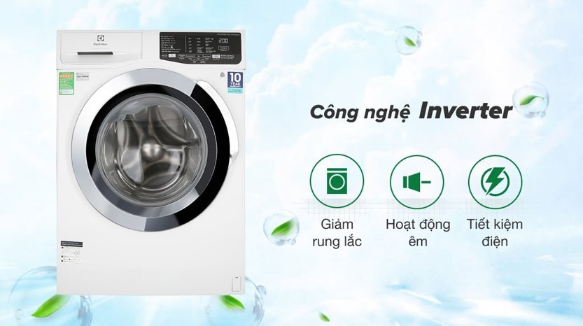 - Với công nghệ Inverter, máy giặt vận hành ổn định, tiết kiệm điện năng mà vẫn mang đến hiệu quả giặt sạch vượt trội. Đồng thời, công nghệ này còn giúp giảm ma sát, hạn chế rung lắc, từ đó giảm thiểu tiếng ồn và kéo dài tuổi thọ cho máy trong quá trình sử dụng hàng ngày.