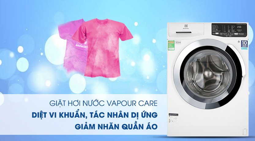 - Công nghệ giặt hơi nước trên máy giặt Electrolux 9 kg EWF9025DQWB sử dụng hơi nước nóng ở nhiệt độ cao để thẩm thấu sâu vào từng sợi vải, giúp loại bỏ bụi bẩn, vi khuẩn và các tác nhân gây dị ứng. Đồng thời, tính năng này còn giảm thiểu tình trạng nhăn nhúm, giúp quần áo mềm mại và dễ là ủi hơn.