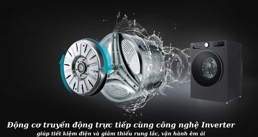 - Động cơ truyền động trực tiếp kết hợp cùng công nghệ Inverter trên Máy Giặt LG 12 Kg FX1412N5G mang lại khả năng vận hành ổn định, êm ái và giảm rung lắc tối ưu. Thiết kế này giúp tăng độ bền của máy, hạn chế hỏng hóc trong quá trình sử dụng. Đặc biệt, công nghệ Inverter còn tối ưu hóa năng lượng, tiết kiệm điện hiệu quả, góp phần giảm chi phí sinh hoạt hàng tháng cho gia đình mà vẫn đảm bảo hiệu suất giặt sạch.