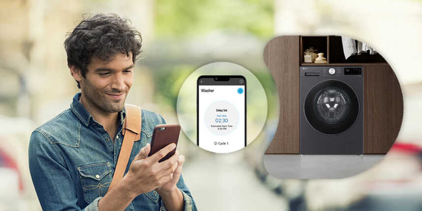 - Điều khiển máy giặt từ xa bằng điện thoại qua ứng dụng LG ThinQ, cho phép người dùng dễ dàng điều khiển và theo dõi hoạt động của máy giặt từ xa bằng điện thoại. Nhờ đó, bạn có thể khởi động, hẹn giờ, tải thêm chương trình giặt mới vô cùng tiện lợi và hiện đại.