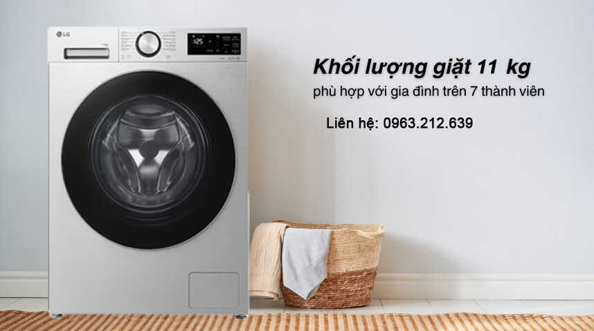 Khối lượng giặt 11 kg, lý tưởng cho gia đình đông trên 7 thành viên.