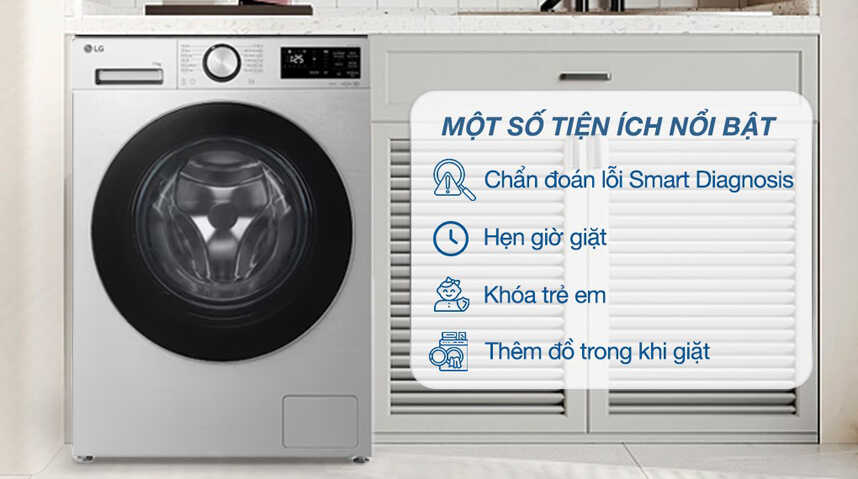 Đèn chiếu sáng lồng giặt Vệ sinh lồng giặt Khóa trẻ em Hẹn giờ giặt Chỉnh nhiệt độ nước Âm báo kết thúc chu trình giặt Khóa cửa máy Làm sạch ngăn bột giặt ho phép điều khiển máy giặt từ xa qua ứng dụng LG ThinQ |