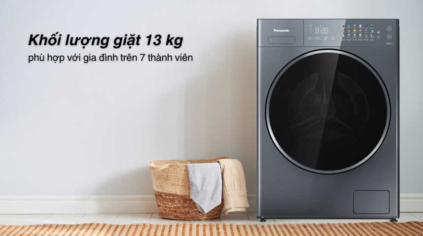 - Máy giặt Panasonic NA-26CVX1AVT với khối lượng giặt lớn 13 kg là lựa chọn lý tưởng cho gia đình từ 6 người trở lên. Khả năng giặt khối lượng lớn giúp tiết kiệm thời gian, phù hợp cho các gia đình thường xuyên giặt nhiều quần áo hoặc các loại chăn mền, rèm cửa, đáp ứng tối ưu nhu cầu sử dụng hàng ngày.