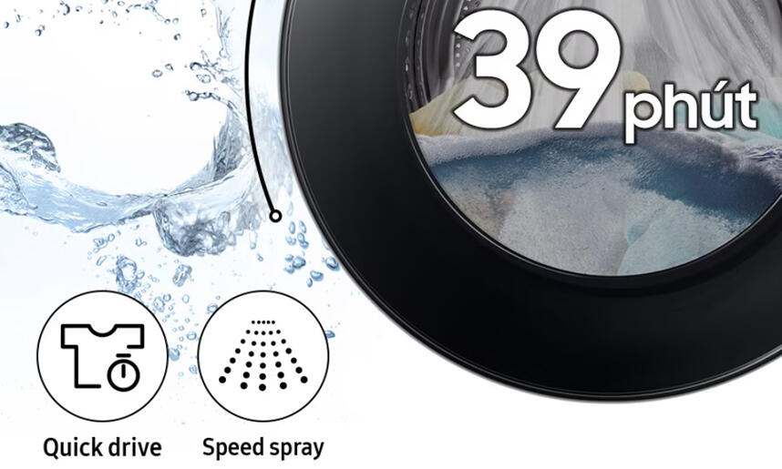 Chế độ giặt nhanh 39 phút giúp tiết kiệm thời gian giặt mỗi ngày