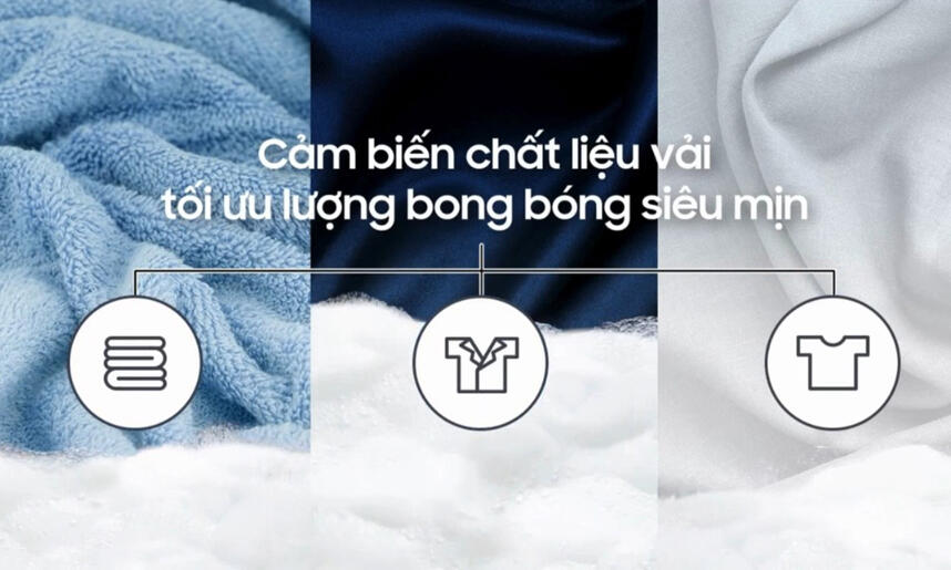 - Máy giặt Samsung được tích hợp nhiều chương trình tiện ích như: giặt nhanh 15 phút, giặt siêu tốc, giặt hơi nước, giặt đồ thể thao, đồ len, đồ trẻ em, đồ màu, giặt khăn, giảm xơ vải, cùng các chế độ giặt chuyên biệt theo từng loại vải hoặc điều kiện thời tiết như chế độ “Ngày nhiều mây”.