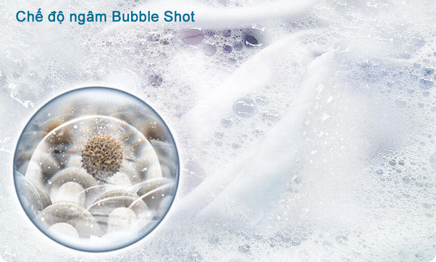 - Chế độ ngâm Bubble Shot sử dụng các tia nước phun mạnh từ phía trên, tăng cường khả năng làm sạch quần áo, đồng thời tiết kiệm thời gian và tài nguyên. Nhờ cơ chế này, máy có thể tiết kiệm đến 20% lượng nước, rút ngắn thời gian giặt đến 25% và giảm tiêu thụ điện năng, mang lại trải nghiệm giặt giũ nhanh chóng và tiết kiệm.