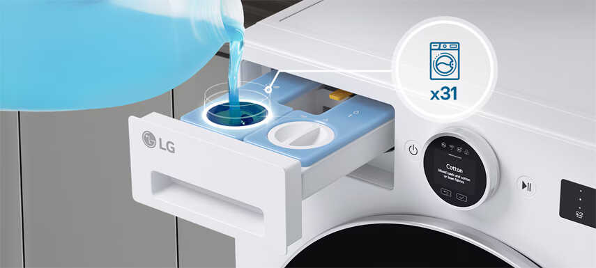 - Công nghệ ezDispense tự động phân bổ lượng nước giặt và nước xả phù hợp với khối lượng và mức độ bẩn của quần áo trong mỗi lần giặt. Điều này giúp đảm bảo hiệu quả giặt tối ưu mà không lãng phí chất giặt tẩy.