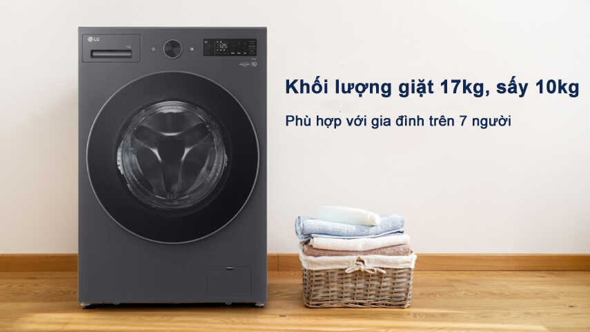 Khối lượng giặt 17 kg và sấy 10kg phù hợp với gia đình đông người