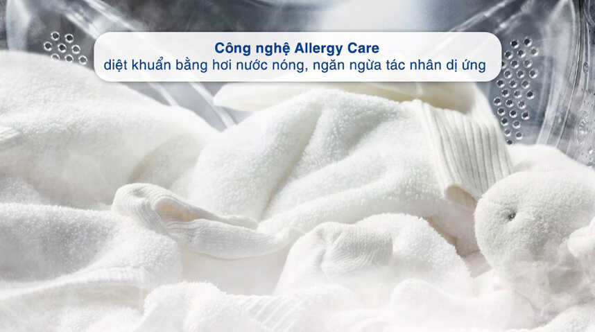 - Công nghệ Allergy Care sử dụng hơi nước ở nhiệt độ cao để diệt khuẩn và loại bỏ các tác nhân gây dị ứng, bảo vệ làn da hiệu quả giúp loại bỏ các mạt bụi và vi khuẩn bám trên quần áo, mang lại sự an toàn cho người dùng, đặc biệt là với những người có làn da nhạy cảm. Nhờ công nghệ này, quần áo không chỉ sạch sẽ mà còn giúp bảo vệ sức khỏe của cả gia đình.