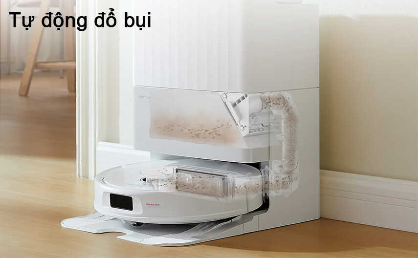 Trạm sạc đa năng: Tự động giặt và sấy giẻ lau, làm đầy bình nước, đổ bụi, đế sạc
