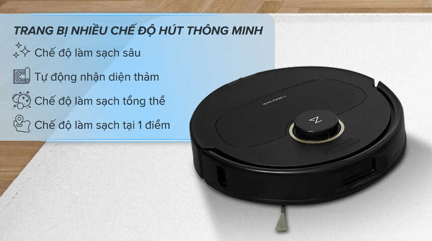 + Làm sạch sâu đối với thảm: Khi chế độ này được kích hoạt, robot sẽ di chuyển theo đường ziczac dạng bàn cờ, hút bụi thêm một lượt sau khi hoàn tất dọn dẹp khu vực, giúp làm sạch triệt để hơn.