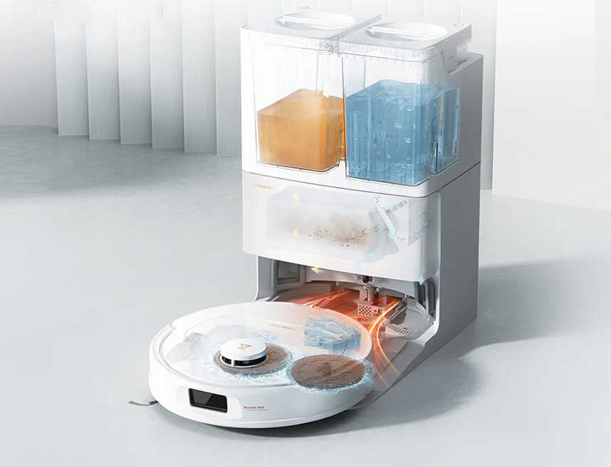 - Trạm sạc thông minh: tự động đổ bụi, giặt khăn lau và sấy khô, giữ giẻ lau sạch sẽ, khử mùi hôi.