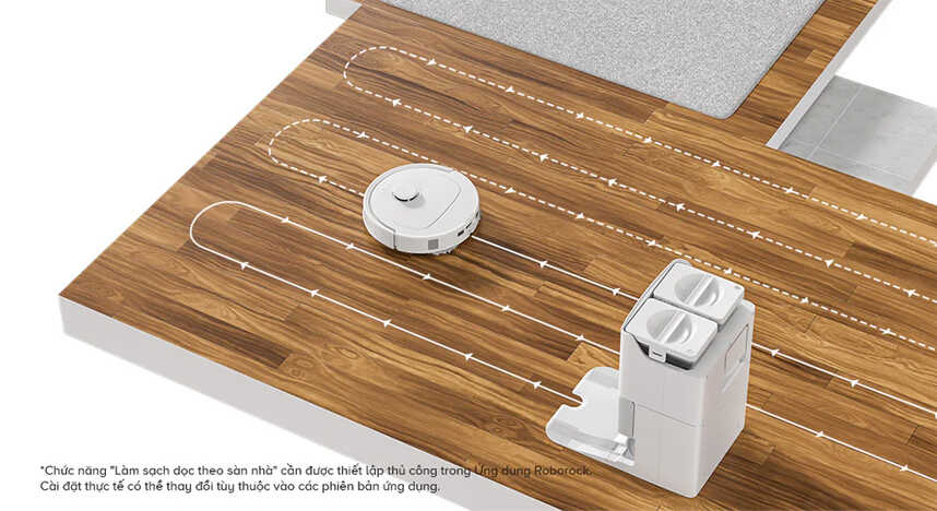 Roborock Qrevo 5AE có khả năng lau theo hướng gạch được thiết lập trong ứng dụng, giúp tối ưu việc loại bỏ lông và bụi bẩn trong các kẽ hở. Cách di chuyển thông minh này còn giảm tiếng ồn khi chổi chính đi qua các vết nứt hoặc rãnh trên sàn, mang lại trải nghiệm vận hành êm ái hơn.