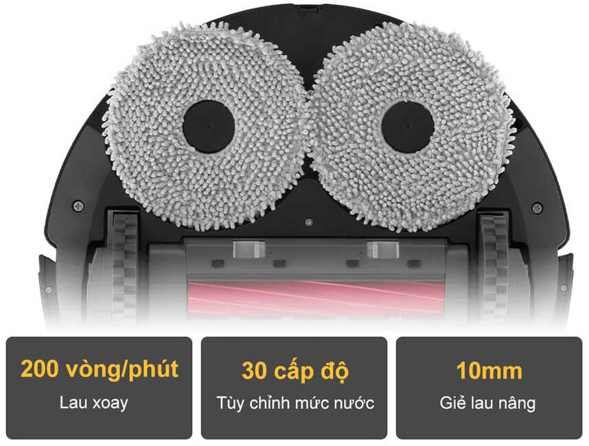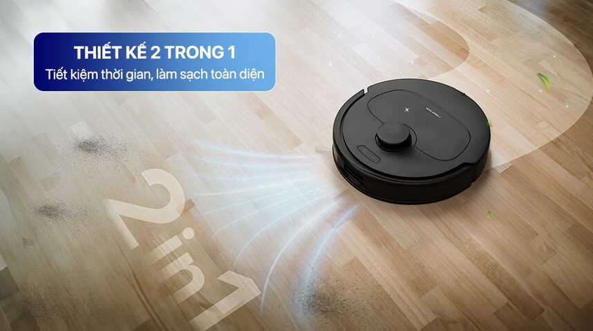 - Máy sở hữu thiết kế hiện đại, sang trọng với gam màu đen nổi bật, dễ dàng hài hòa trong nhiều không gian nội thất. Robot được trang bị hộp bụi 330 ml và hộp nước 80 ml, đáp ứng hiệu quả nhu cầu vệ sinh hằng ngày, đặc biệt phù hợp cho những gia đình muốn duy trì sự sạch sẽ mà không cần nhiều thao tác thủ công.