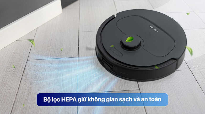 Bộ lọc HEPA của robot giữ lại bụi mịn và vi khuẩn, giúp mang đến không khí trong lành hơn, đặc biệt phù hợp cho gia đình có trẻ nhỏ hoặc người dễ bị dị ứng. Để duy trì hiệu quả tối ưu, bạn nên vệ sinh bộ lọc định kỳ, tránh để bụi tích tụ lâu gây giảm hiệu suất làm việc của robot.