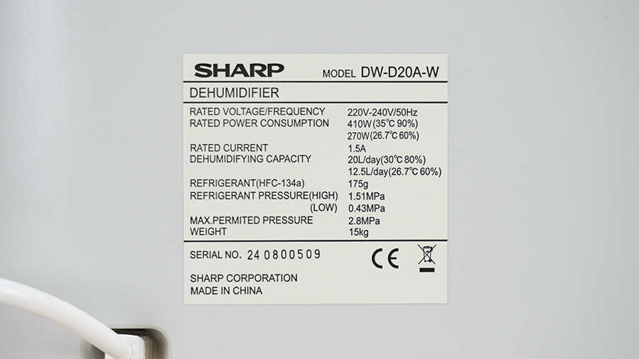 | Công suất hút ẩm (L/ngày) | 20 (ở 30 độ C, 80%RH)/12.5 (ở 26.7 độ C, 80%RH) |