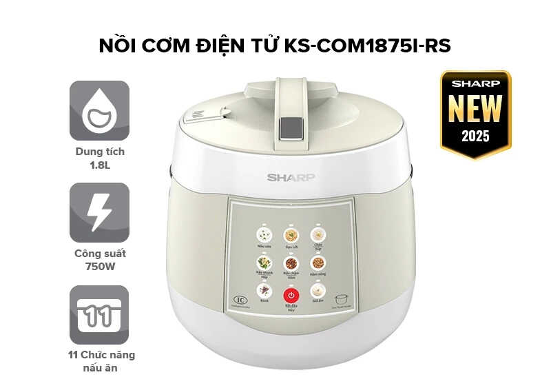 Nồi cơm điện tử Sharp KS-COM1875I-RS với thiết kế hiện đại, bảng điều khiển dễ sử dụng, chế độ nấu đa dạng và khả năng giữ ấm đến 12 giờ, là lựa chọn lý tưởng cho mọi gia đình.