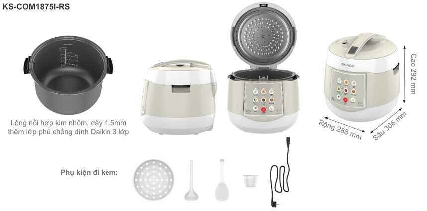 | Tên sản phẩm | Nồi cơm đện tử Sharp 1.8 lít KS-COM1875I-RS |