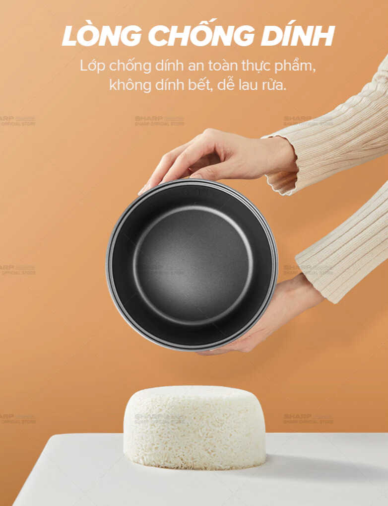 Nồi cơm điện Sharp dung tích 1.5 lít này mang đến bữa cơm ngon nóng hổi mỗi ngày, vừa đủ cho gia đình nhỏ, không lo dư thừa. Thiết kế hiện đại, dễ sử dụng, giúp nấu cơm nhanh chóng, hạt cơm chín đều và thơm dẻo. Đặc biệt, lòng nồi chống dính cao cấp an toàn cho thực phẩm, giúp cơm không bám dính, dễ lấy ra và thuận tiện trong việc vệ sinh, lau rửa.