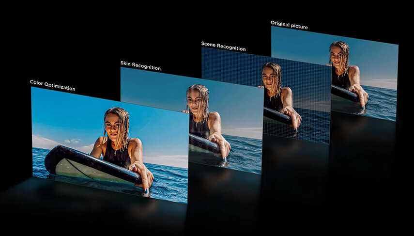 - AI Color tối ưu hóa dải màu sắc, hiển thị màu sắc rực rỡ và tự nhiên hơn. AI Clarity sử dụng các thuật toán đặc biệt để giảm nhiễu, tăng cường độ sắc nét, giúp mọi khung hình trở nên rõ ràng và chi tiết.