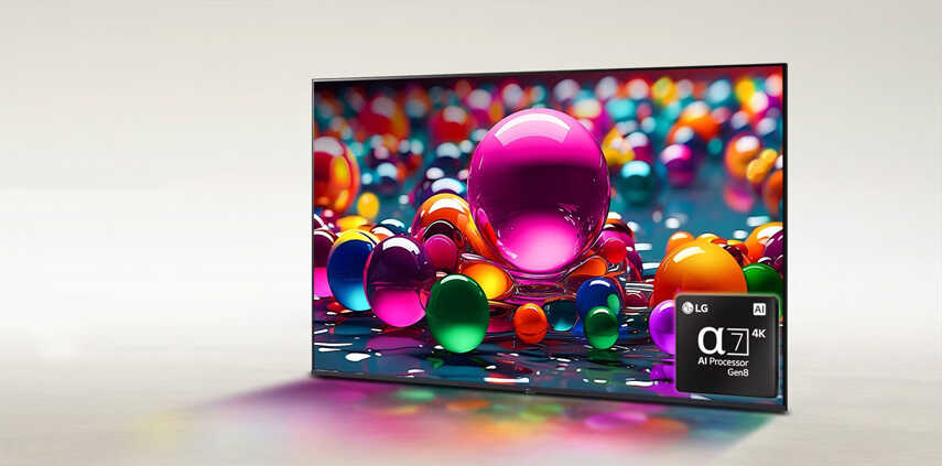 - Tivi LG 43 inch 43UA8450PSA được trang bị bộ xử lý AI 4K α7 Gen 8 mạnh mẽ với cải tiến vượt bậc về hiệu suất, mang đến khả năng xử lý hình ảnh nhanh chóng, mượt mà. Nhờ đó, tivi nâng tầm chất lượng hiển thị với độ sắc nét và chiều sâu ấn tượng, tái tạo hình ảnh 4K chân thực, sống động và giàu chi tiết hơn bao giờ hết.