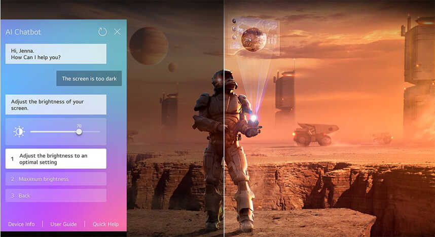 - Hỏi đáp tức thì với trợ lý thông minh AI Chatbot: Tương tác với AI Chatbot qua AI Magic Remote để giải đáp mọi thắc mắc, từ cài đặt đến khắc phục sự cố, TV sẽ thấu hiểu bạn và phản hồi tức thì.