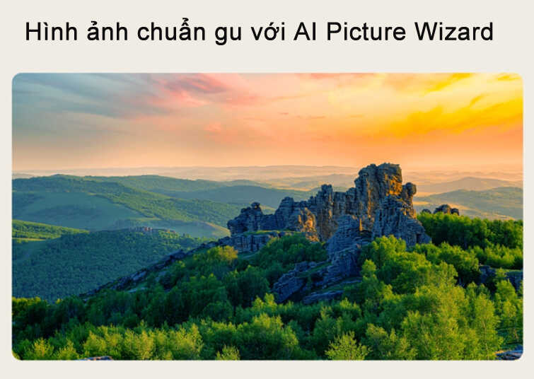 - AI Picture Wizard: Lựa chọn chế độ yêu thích, AI Picture Wizard sẽ tự động thiết lập những khung hình được tinh chỉnh theo sở thích của bạn từ 1,6 tỷ hình ảnh, sau đó lưu lại chế độ vào hồ sơ cá nhân, giúp tái tạo hình ảnh tối ưu hóa cho từng trải nghiệm xem.