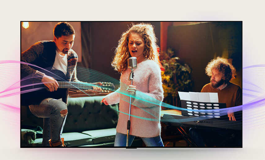 Âm thanh lan tỏa mạnh mẽ khắp không gian phòng nhờ công nghệ AI Sound Pro.