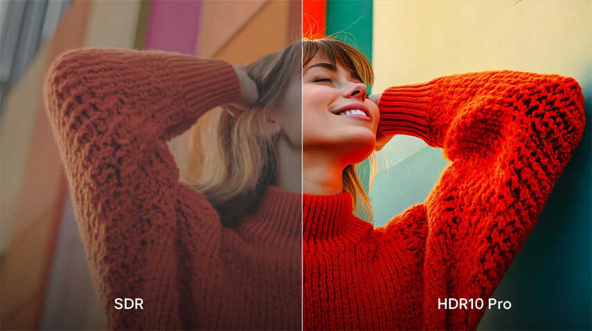 - Công nghệ HDR10 mang đến màu sắc sống động và độ sáng rực rỡ, nâng tầm độ phân giải màn hình, cho trải nghiệm hình ảnh vượt trội với độ tương phản sắc nét, rõ ràng đến từng chi tiết trong cả vùng sáng lẫn vùng tối.