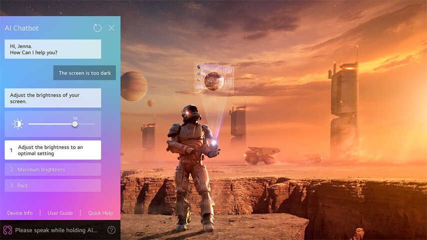 - Điều khiển giọng nói cùng nút AI mới giúp bạn tương tác nhanh chóng với trợ lý thông minh. Chỉ cần thao tác nhấp, kéo, thả đơn giản, webOS mang đến trải nghiệm trực quan và vượt trội, dễ dàng điều khiển mọi chức năng trên tivi.