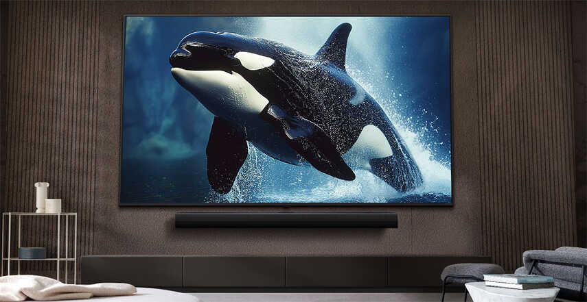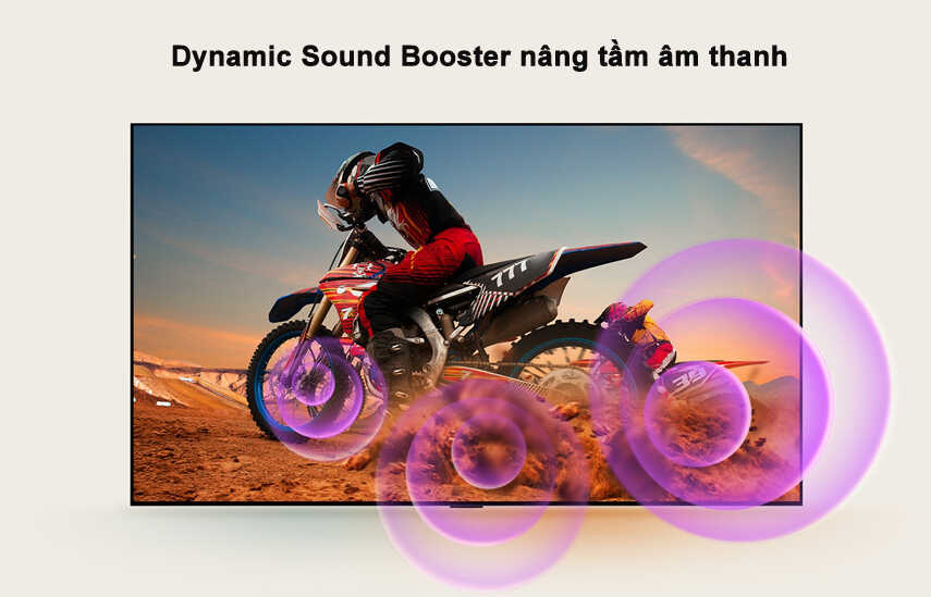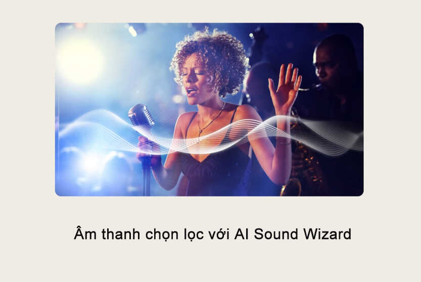 Âm thanh lan tỏa mạnh mẽ khắp không gian phòng nhờ công nghệ AI Sound Pro.