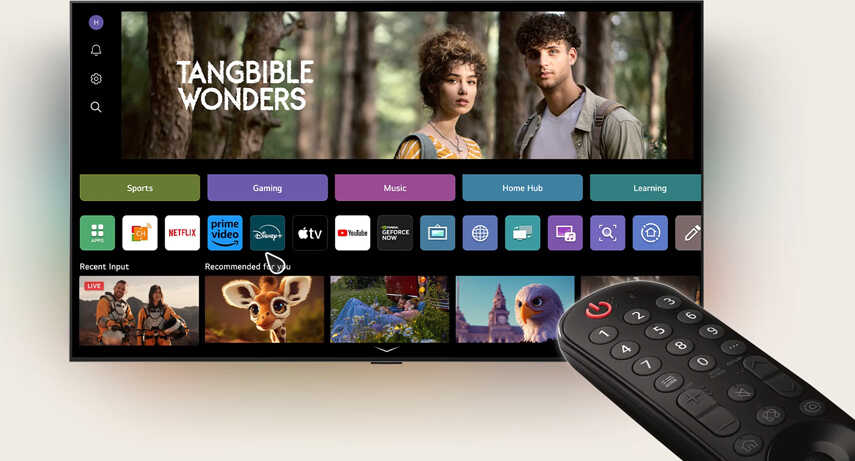 - Điều khiển giọng nói cùng nút AI mới giúp bạn tương tác nhanh chóng với trợ lý thông minh, mang lại sự tiện lợi tối đa. Với thao tác nhấp, kéo, thả đơn giản, webOS cung cấp trải nghiệm trực quan, vượt trội, giúp dễ dàng truy cập và điều khiển tivi một cách nhanh chóng và tiện lợi.