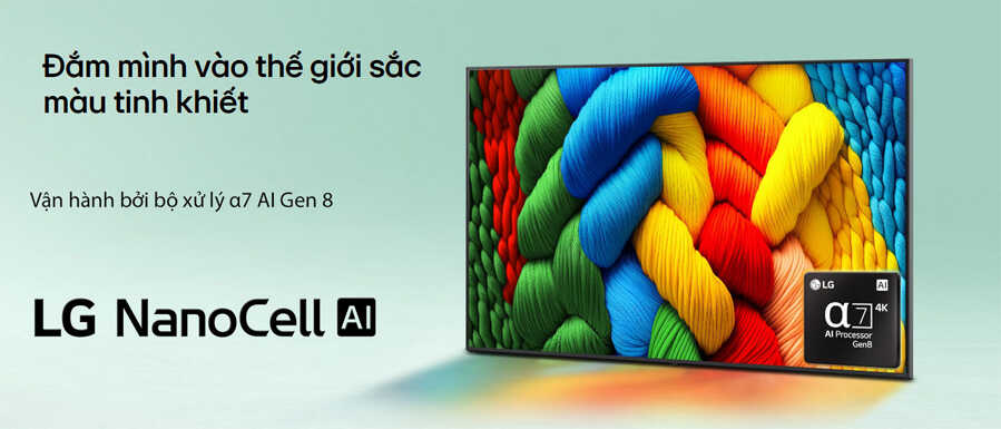 - Bộ xử lý α7 AI Processor 4K Gen8 được tích hợp trên tivi 75NANO80ASA mang đến hiệu suất xử lý hình ảnh vượt trội. Nhờ khả năng khử nhiễu hiệu quả, tối ưu độ tương phản và điều chỉnh độ bão hòa màu sắc, tivi tái hiện khung hình sống động, sắc nét và chân thực đến từng chi tiết. Công nghệ AI còn giúp nhận diện nội dung hiển thị để tinh chỉnh phù hợp, mang lại trải nghiệm hình ảnh cao cấp, mượt mà và giàu chiều sâu hơn cho người.