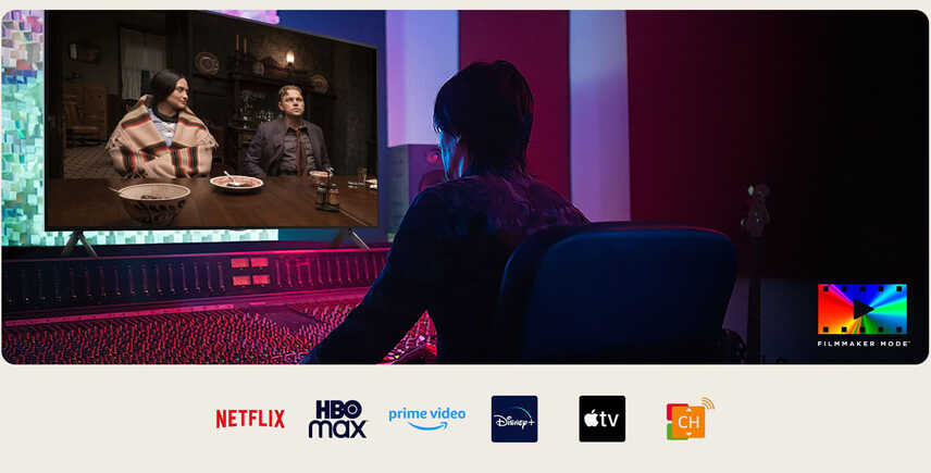 - Chế độ FILMMAKER MODE mang đến trải nghiệm xem phim chân thực, giữ nguyên ý đồ của đạo diễn. Tivi LG tự động điều chỉnh các cài đặt hình ảnh như màu sắc, độ sáng và tỷ lệ khung hình để tái tạo chính xác từng cảnh quay, giúp bạn đắm chìm vào từng bộ phim như thể đang xem tại rạp chiếu.