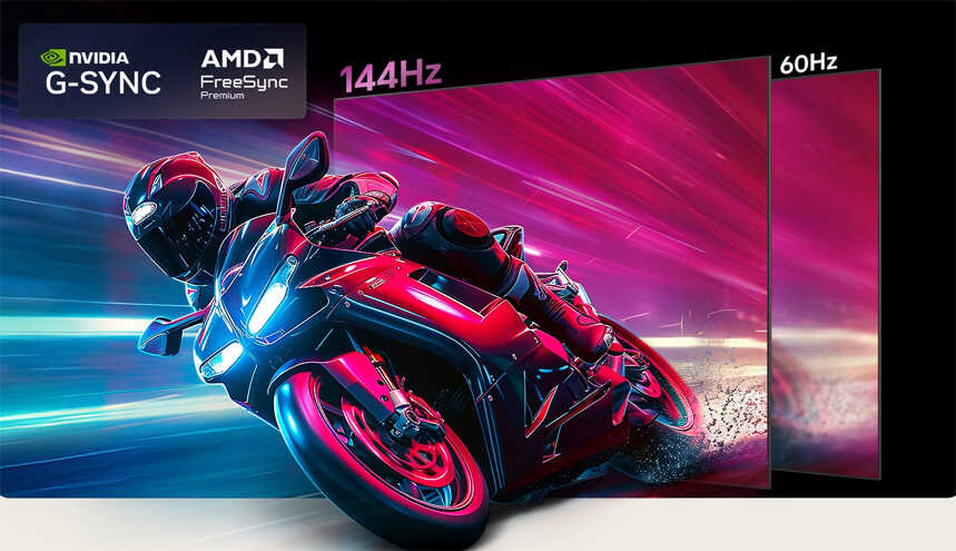 Tần số quét 144Hz, hỗ trợ G-SYNC, FreeSync Premium, tối ưu chơi game mượt mà