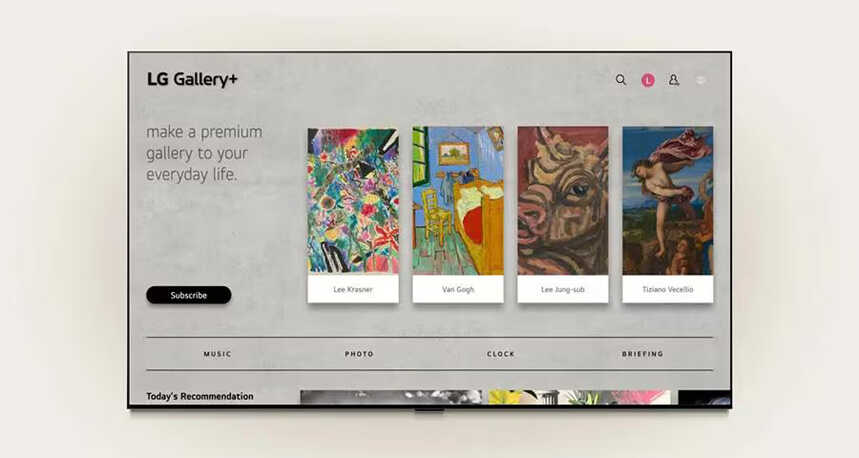 - LG Gallery+, cho phép bạn khám phá hơn 100+ tác phẩm nghệ thuật, video ambient và nhiều nội dung hình ảnh đặc sắc để nâng tầm không gian sống. Thư viện được cập nhật thường xuyên giúp người dùng dễ dàng lựa chọn những chủ đề phù hợp với sở thích và phong cách nội thất.