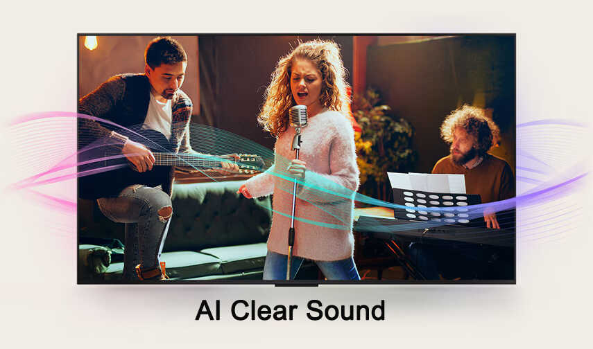 - AI Clear Sound tự động hiệu chỉnh âm sắc và tối ưu hóa chi tiết, mang đến âm thanh rõ nét, chân thực và sống động, giúp bạn tận hưởng trải nghiệm nghe đầy cảm xúc và cuốn hút.