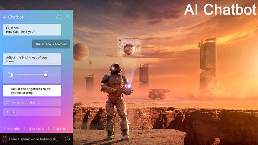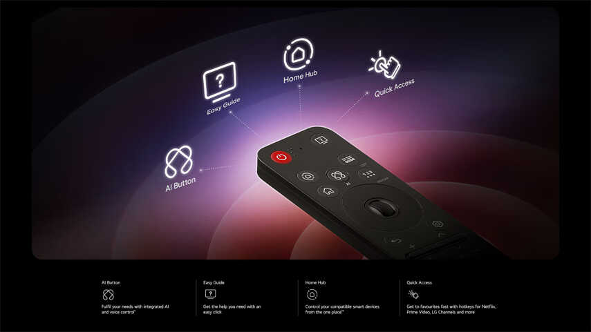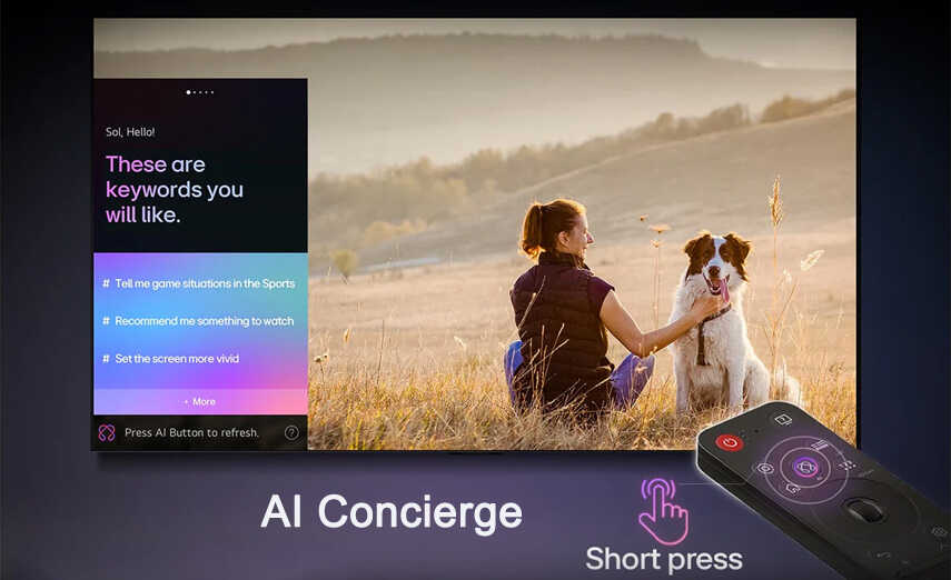 - AI Chatbot Hỏi đáp với trợ lý thông minh, tương tác qua Điều khiển AI Magic để giải đáp mọi thắc mắc, từ cài đặt đến khắc phục sự cố. TV sẽ thấu hiểu bạn và phản hồi tức thì.