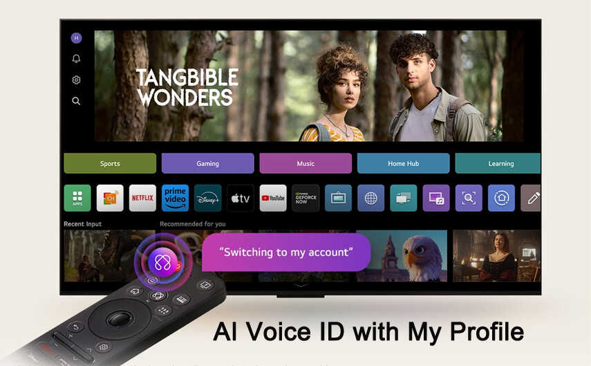 - Trải nghiệm cá nhân hóa cùng AI Voice ID, LG AI Voice ID nhận diện giọng nói đặc trưng của bạn, mang đến trải nghiệm được thiết kế riêng ngay từ khi bạn mở TV và nói.