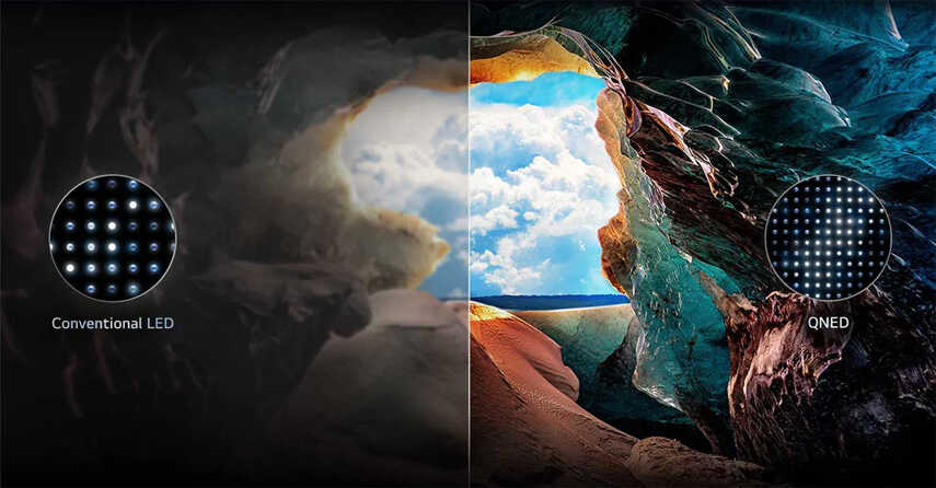 - Công nghệ dải màu rộng Dynamic QNED Color mang đến trải nghiệm hình ảnh sống động, rực rỡ và chân thực hơn cả thế giới thực với độ tương phản ấn tượng, giúp bạn hoàn toàn chìm đắm vào không gian giải trí đầy mê hoặc.